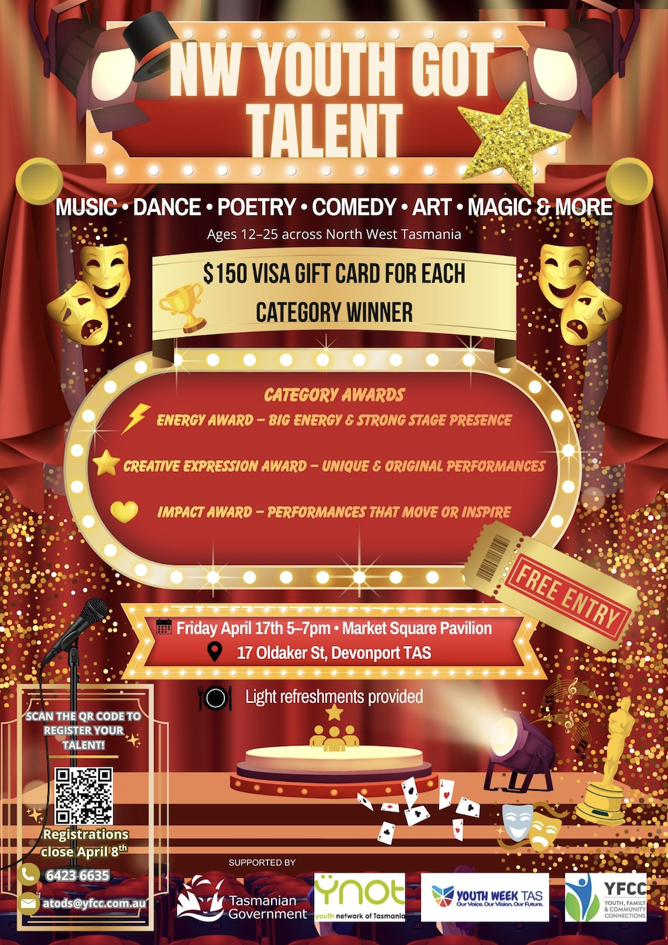 NW Youth Got Talent is a Youth Week Tasmania event for young people aged 12–25 across the North West Coast to showcase their talents in front of a live audience.