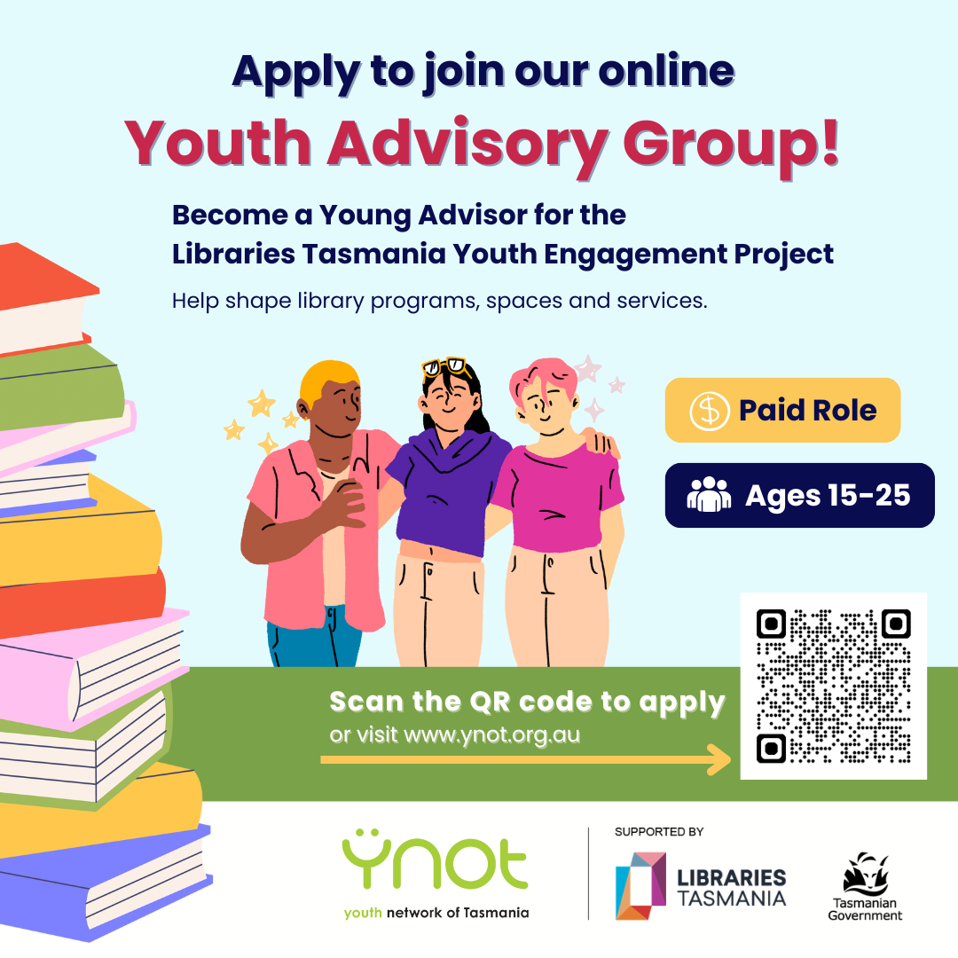 This opportunity is open to young people aged 15-25 who currently live in Tasmania. No previous experience is required, but you must be a library user or have knowledge of Libraries Tasmania services and be comfortable speaking up in a small group.