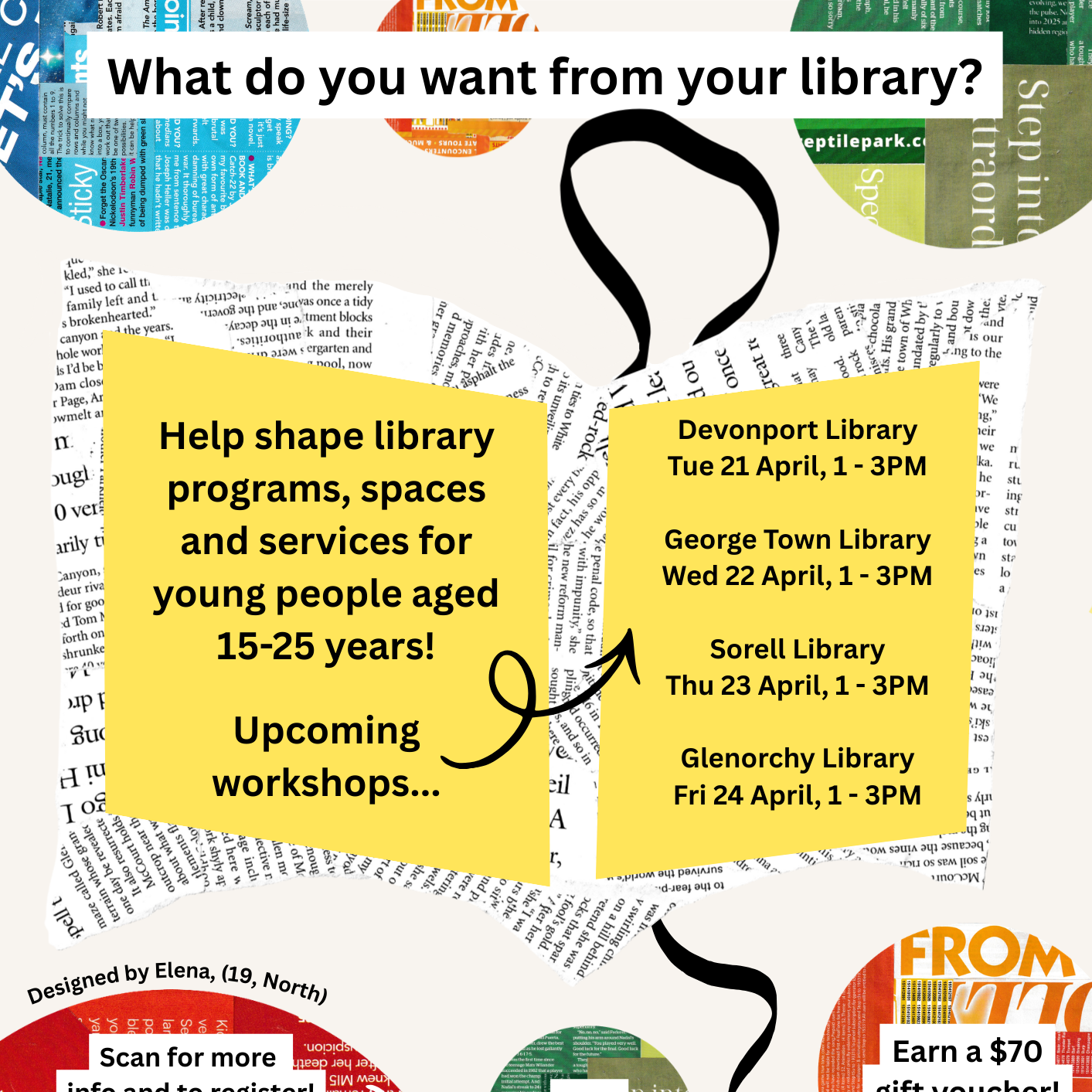 Youth Network of Tasmania What's On? What's On? The YNOT Calendar is being updated weekly with the latest events, training and professional development activities for young people and the Tasmanian youth sector. Image Youth Workshops @ Libraries Tasmania Image Join us for the TYF Regional Roadshow in George Town! Event Dates Friday, 27 March, 2026 29-67 Macquarie St Image George Town Skate Jam Event Dates Saturday, 18 April, 2026 Regent Square Skate Park Image Side Hustle 101 Event Dates Monday, 20 April, 2026 40 Melville Street Image Youth Fest Event Dates Wednesday, 22 April, 2026 12 Home Point Parade Image Join us for the TYF South Regional Roadshow! Event Dates Friday, 29 May, 2026 Sorell