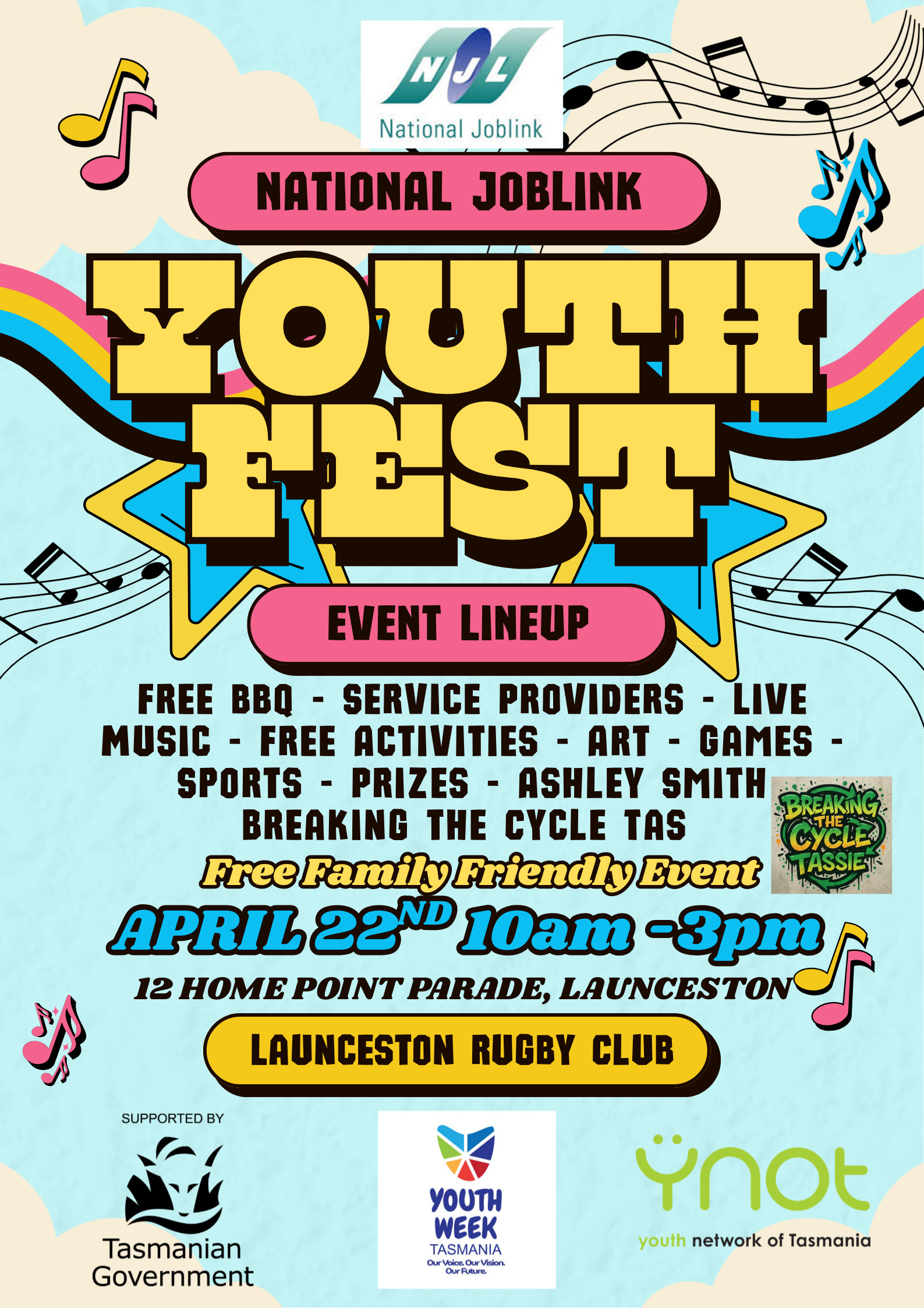 A free, all inclusive youth oriented music event with food and activities organized alongside the youth of Launceston to celebrate local talent and community connections that support the Youth of Launceston.